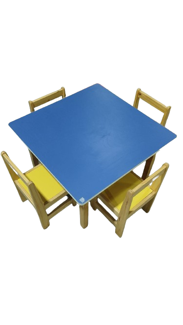 Esta mesa de diseño cuadrado, con dimensiones de 80 x 80cm, es perfecta para el cuarto de juegos o el área de estudio de los niños. Las patas de madera sólida garantizan una estructura firme y segura, mientras que su tamaño es ideal para acomodar diversas actividades infantiles. Su acabado en madera natural no solo es estético y cálido, sino que también es fácil de limpiar y mantener. Esta mesa se complementa con sillas de tamaño adecuado que aseguran una postura correcta y cómoda para los pequeños durante su uso.